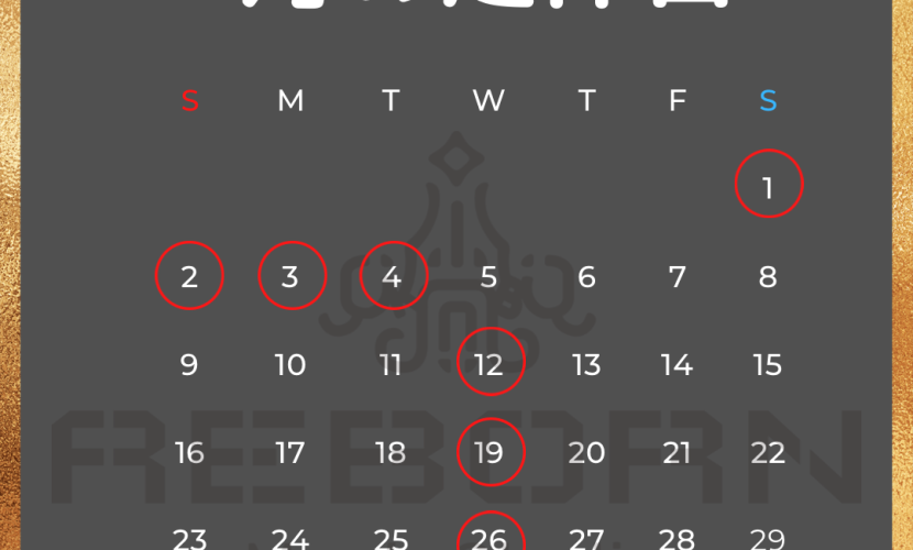 1月は1日、2日、3日、4日、12日、19日、26日です‼️