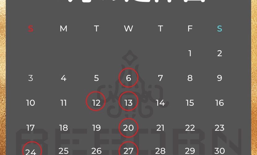6日(水)、12日(火)、13日(水)、20日(水)、24日(日)、27日(水)になります💁