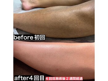こちらは、足の脱毛初回ご来店時から4回目の施術後2週間経過したときのビフォーアフター