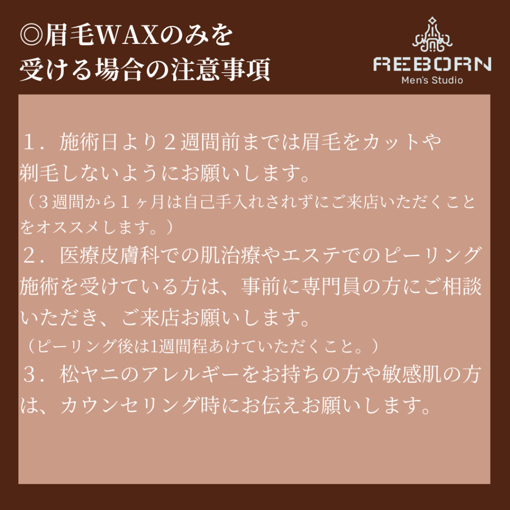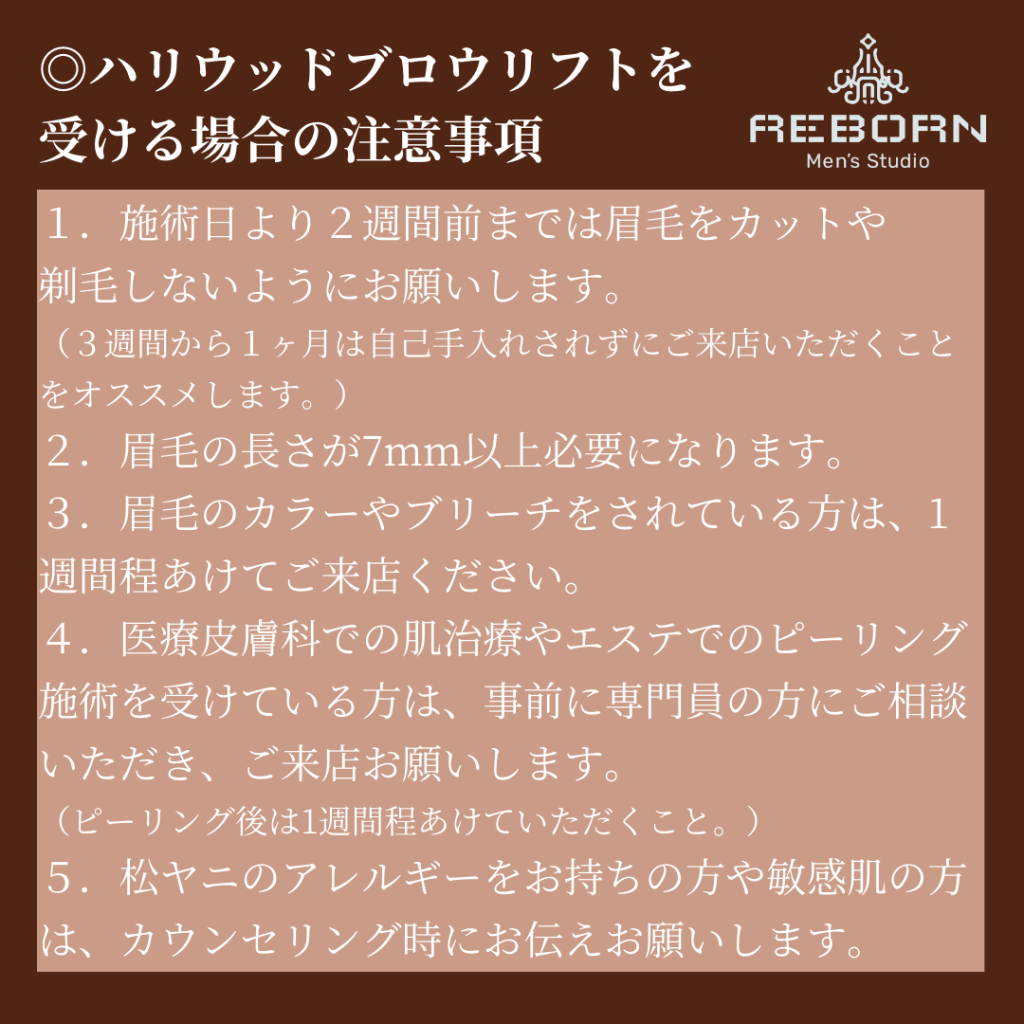 3.眉毛のカラーやブリーチをされている方は、1週間程あけてご来店ください。